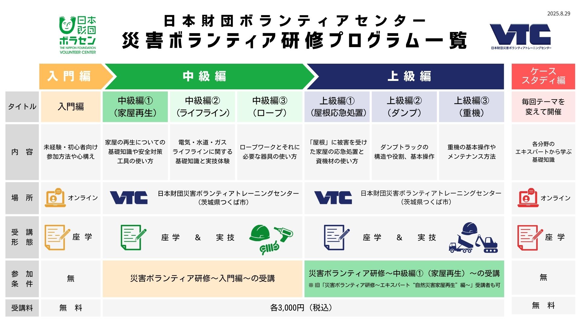 技術系災害ボランティアの普及・発展を目的として連絡協議会「日本財団災害ボランティアトレーニングセンターネットワーク(VTCネットワーク)」を設置し、日本財団ボランティアセンターが事務局を務め、団体間の相互の情報共有や連携協働を促進しています。